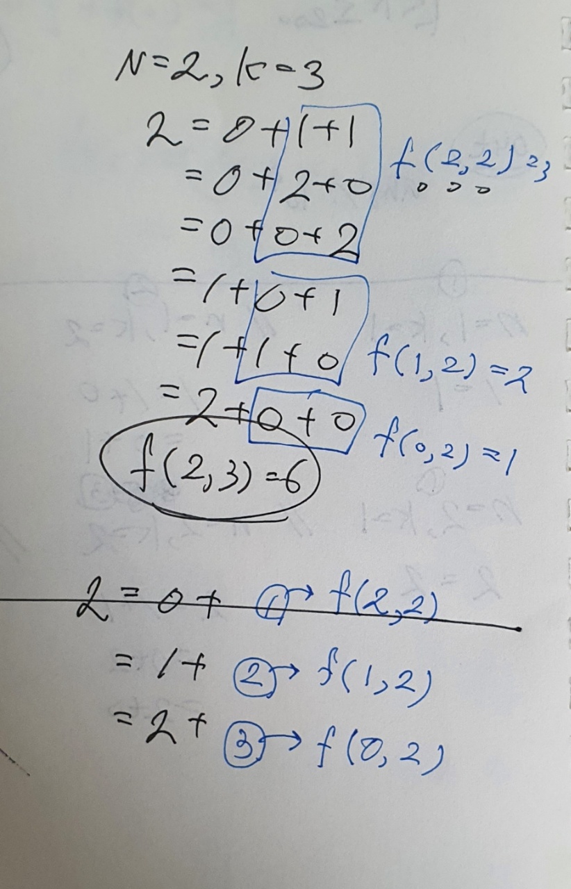 ๊ทธ๋ฆฌ๊ณ 0๋ถํฐ N๊น์ง์ ์ ์ K๊ฐ๋ฅผ ๋ํด์ ๊ทธ ํฉ์ด N์ด ๋๋ ๊ฒฝ์ฐ์ ์๋ฅผ $f(N,K)$๋ผ๊ณ ํ์.