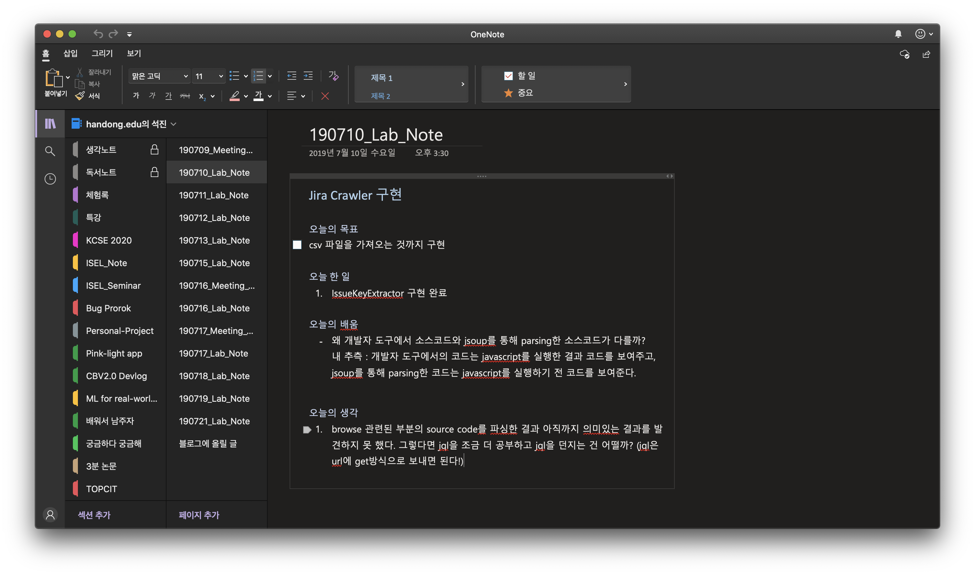 난 Microsoft의 OneNote를 이용해서 개발일지를 작성하는데 그 이유는 학교 계정을 사용하면 무료이기 때문이다!