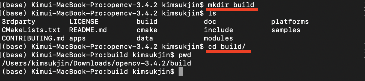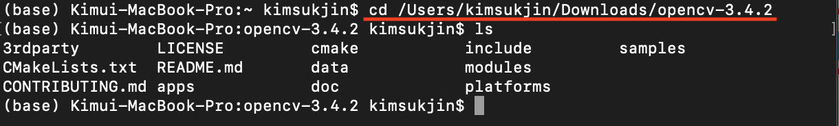 2. 다운로드가 끝나면 압축을 풀고 터미널에서 openCV 3.4.2 폴더로 이동한다.