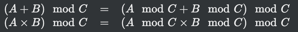 μ΄λ 2λ²μ§Έ, 3λ²μ§Έ μμμ λλ¨Έμ§ μ°μ°μ μ±μ§μ μ΄μ©ν κ²μΈλ° κ·Έκ²λ€μ μλμ κ°λ€.